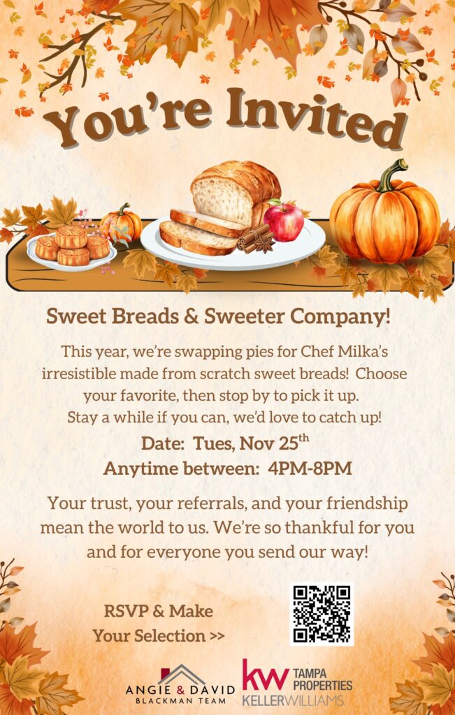 Name(Required) First Last Your Sweet Bread Choice(Required)Blueberry-LemonPumpkinBanana-WalnutCinnamon Swirl